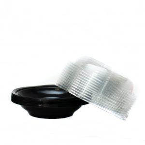 Caserola Neagra cu Capac Transparent, pentru livrare salate aperitiv, pentru transportul alimentelor, se etanseaza usor si sunt de mare efect.