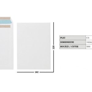 Plic C5 alb siliconic, fabricat din hartie offset alba 80g/mp, au o sigilare, inchidere pe latura mica