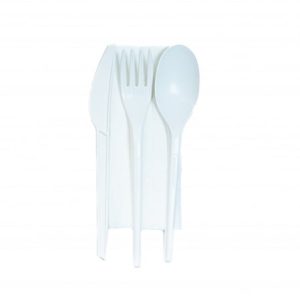 Comandati Tacamuri albe lingura, furculita, cutit si servetel, ambalate individual 100buc/set, biodegradabil la cel mai bun raport calitate-pret la Elhor Trade.