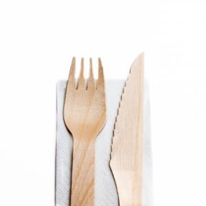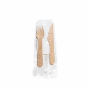 Tacamuri Bis furculita, cutit din lemn si servetel, ambalate individual 100buc/set, de unica folosinta, fabricate din lemn de inalta calitate ideale pentru catering, fast food si street food sau pentru birou. Cutit din lemn ascuit cu varf.
