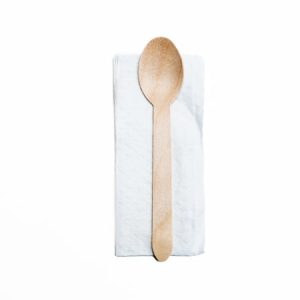 Tacamuri lingura lemn si servetel, ambalate individual 100buc/set, de unica folosinta, fabricate din lemn de inalta calitate ideale pentru catering, fast food si street food sau pentru birou.